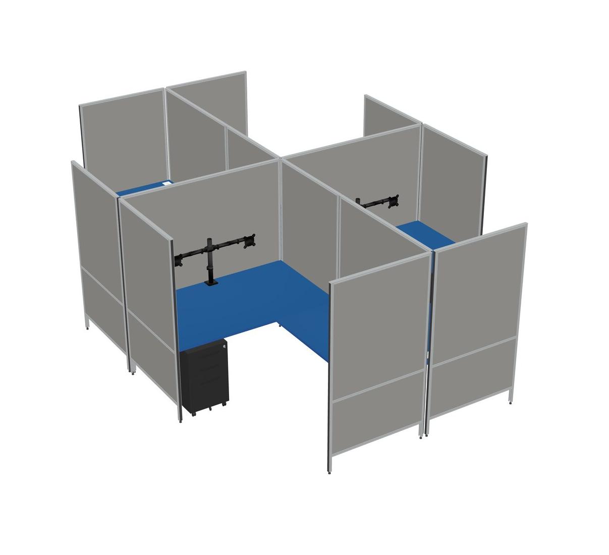 Prism Blue Modern Modular Quad L-Shaped Panel System + Metal Mobile Drawers + Monitor Arm (double Arms)