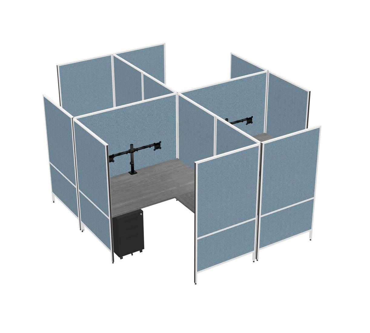 Grey Modern Modular Quad L-Shaped Panel System + Metal Mobile Drawers + Monitor Arm (double Arms)