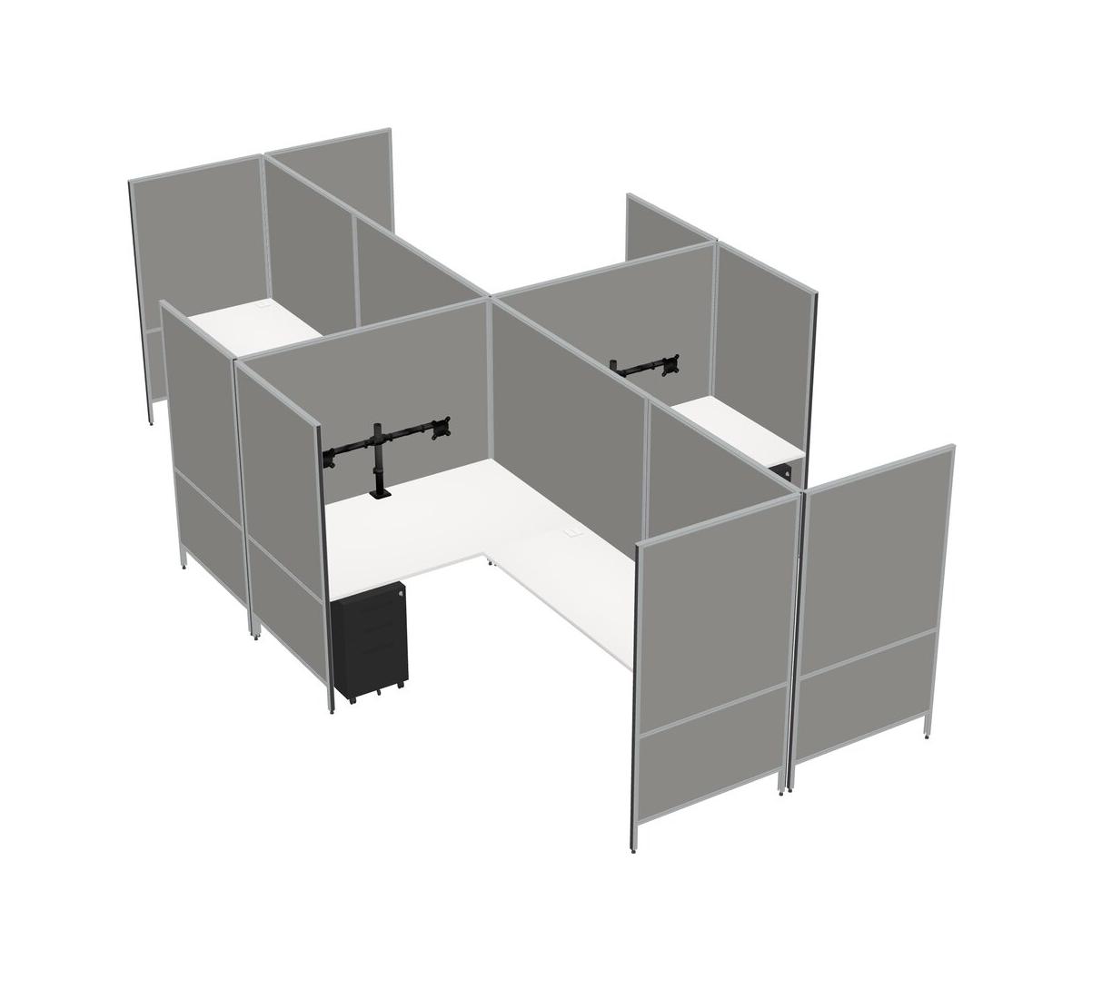 White Modern Modular Quad L-Shaped Panel System + Metal Mobile Drawers + Monitor Arm (double Arms)