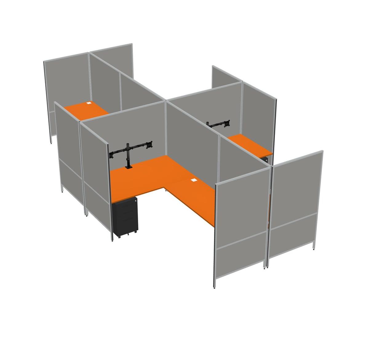Orange Modern Modular Quad L-Shaped Panel System + Metal Mobile Drawers + Monitor Arm (double Arms)