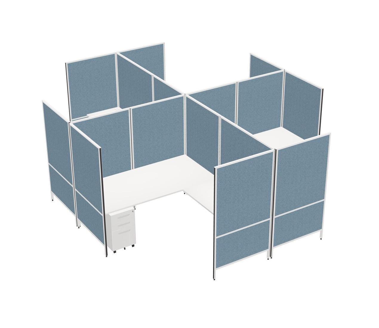 White Modern Modular Quad L-Shaped Panel System + Metal Mobile Drawers