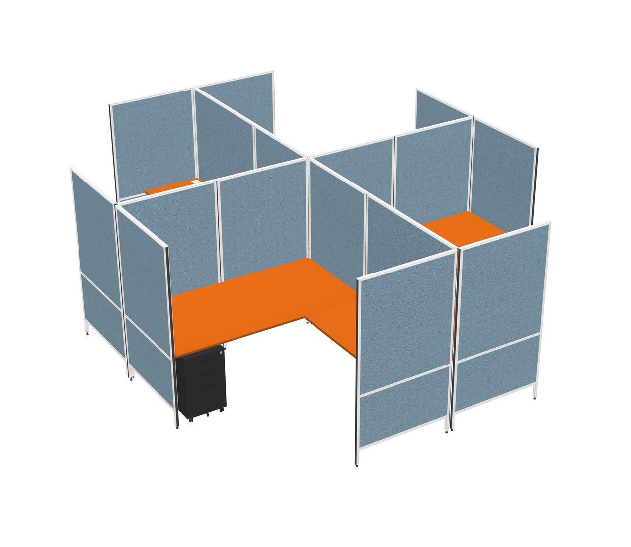 Orange Modern Modular Quad L-Shaped Panel System + Metal Mobile Drawers