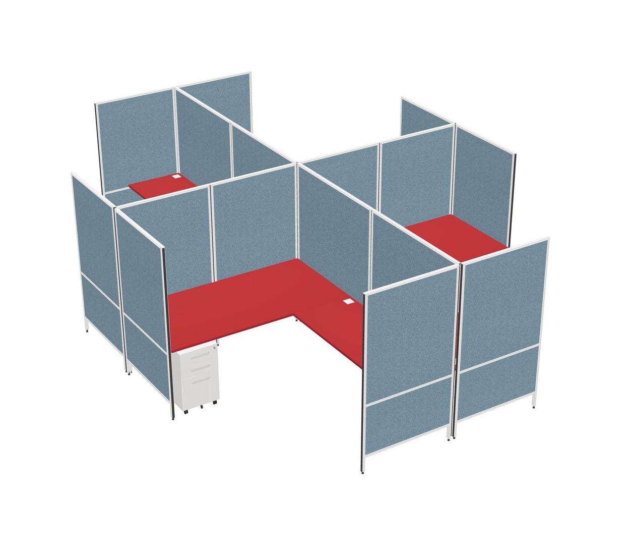 Prism Red Modern Modular Quad L-Shaped Panel System + Metal Mobile Drawers