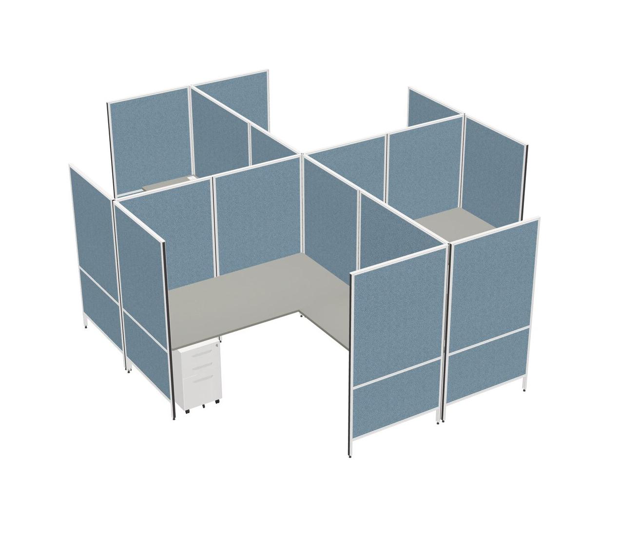 Grey Shadows Modern Modular Quad L-Shaped Panel System + Metal Mobile Drawers