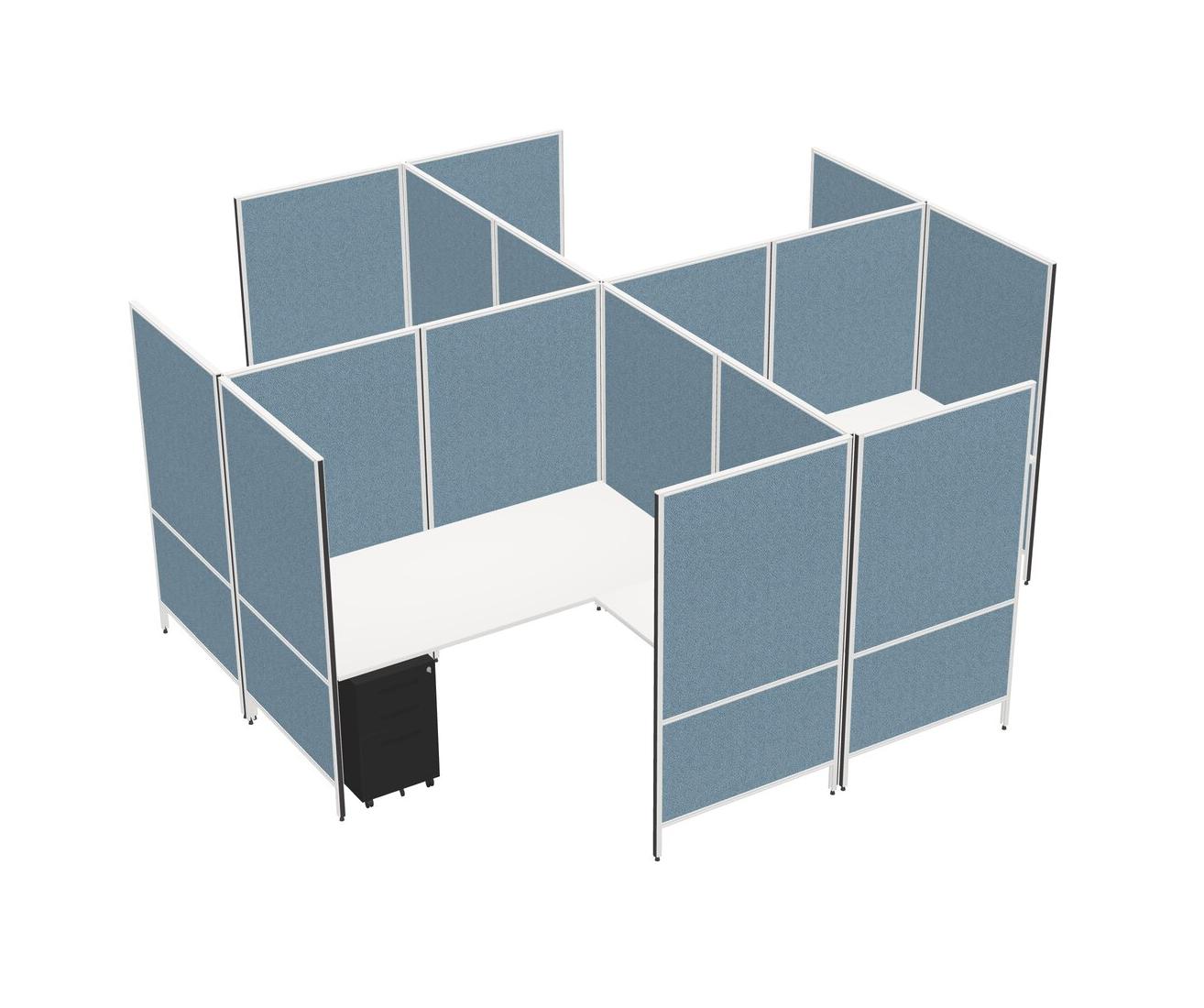 White Modern Modular Quad L-Shaped Panel System + Metal Mobile Drawers