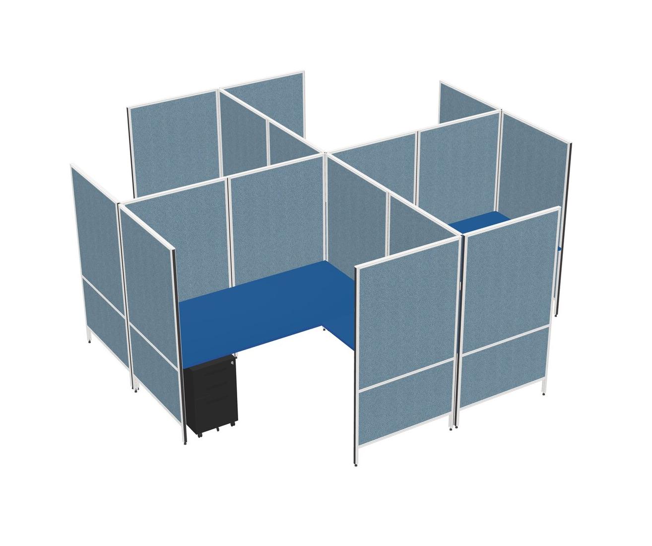 Prism Blue Modern Modular Quad L-Shaped Panel System + Metal Mobile Drawers
