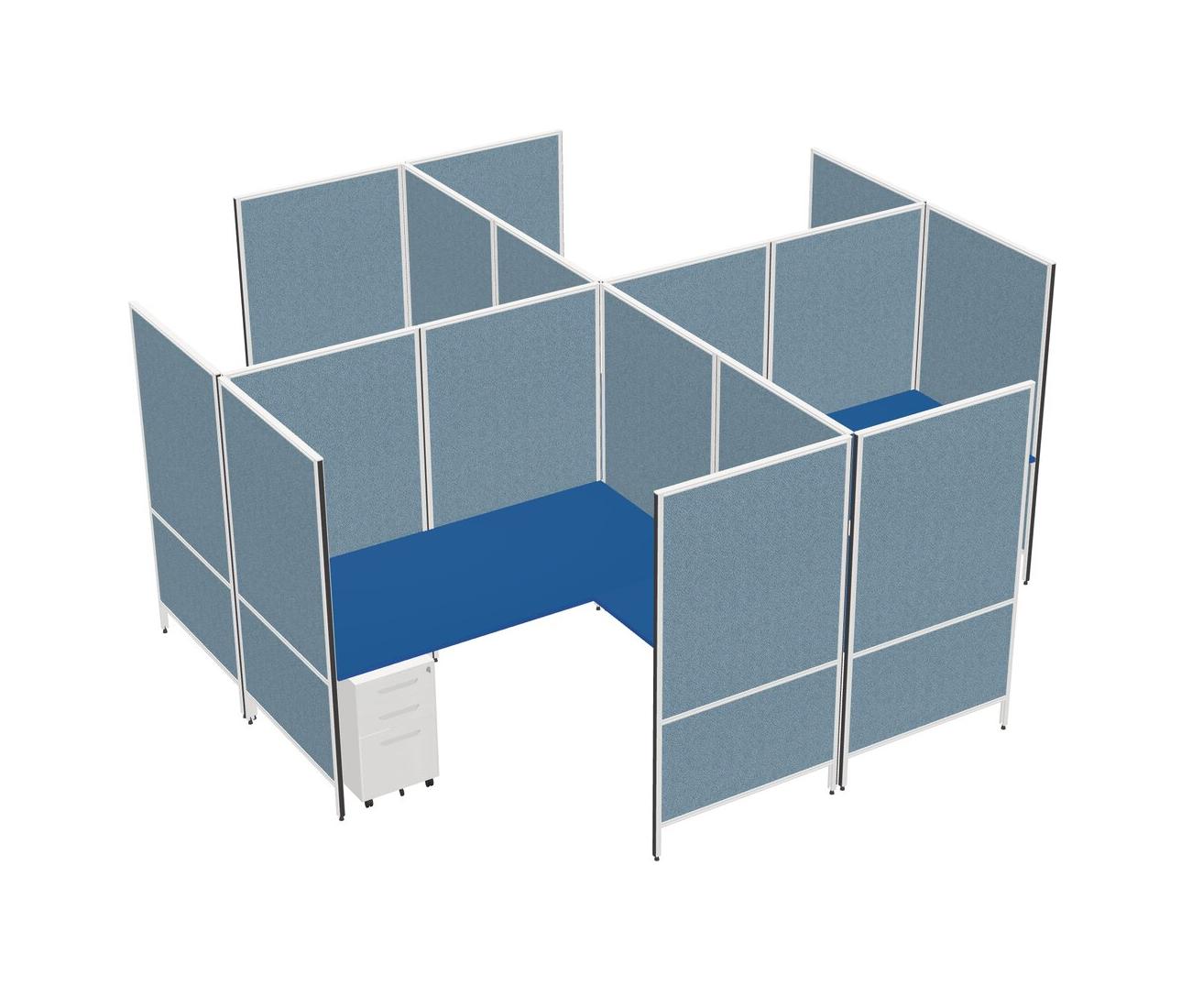 Prism Blue Modern Modular Quad L-Shaped Panel System + Metal Mobile Drawers