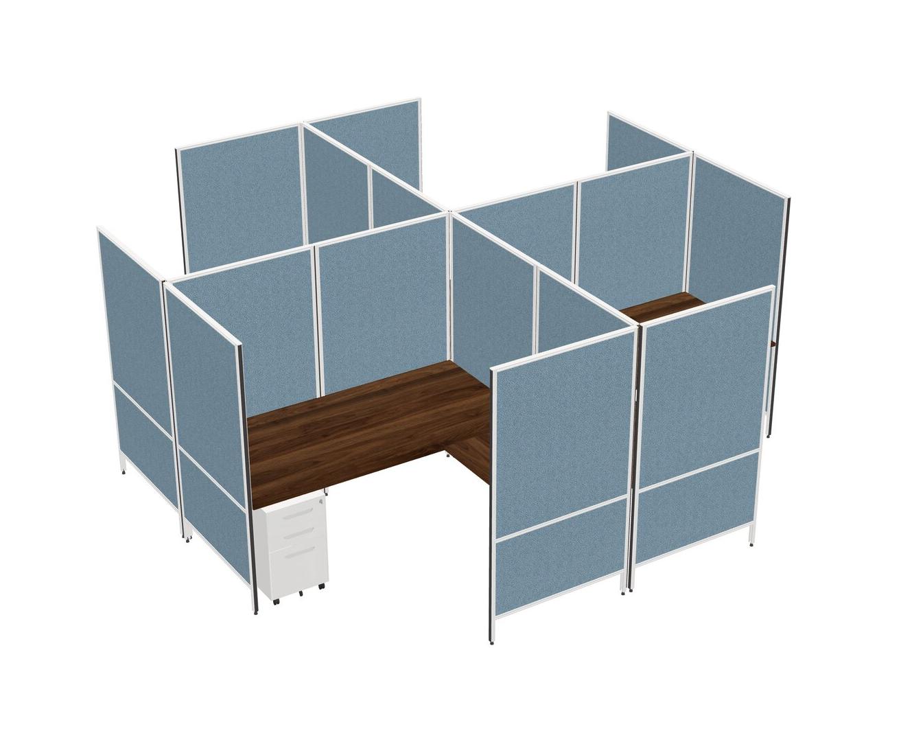 Columbia Walnut Modern Modular Quad L-Shaped Panel System + Metal Mobile Drawers