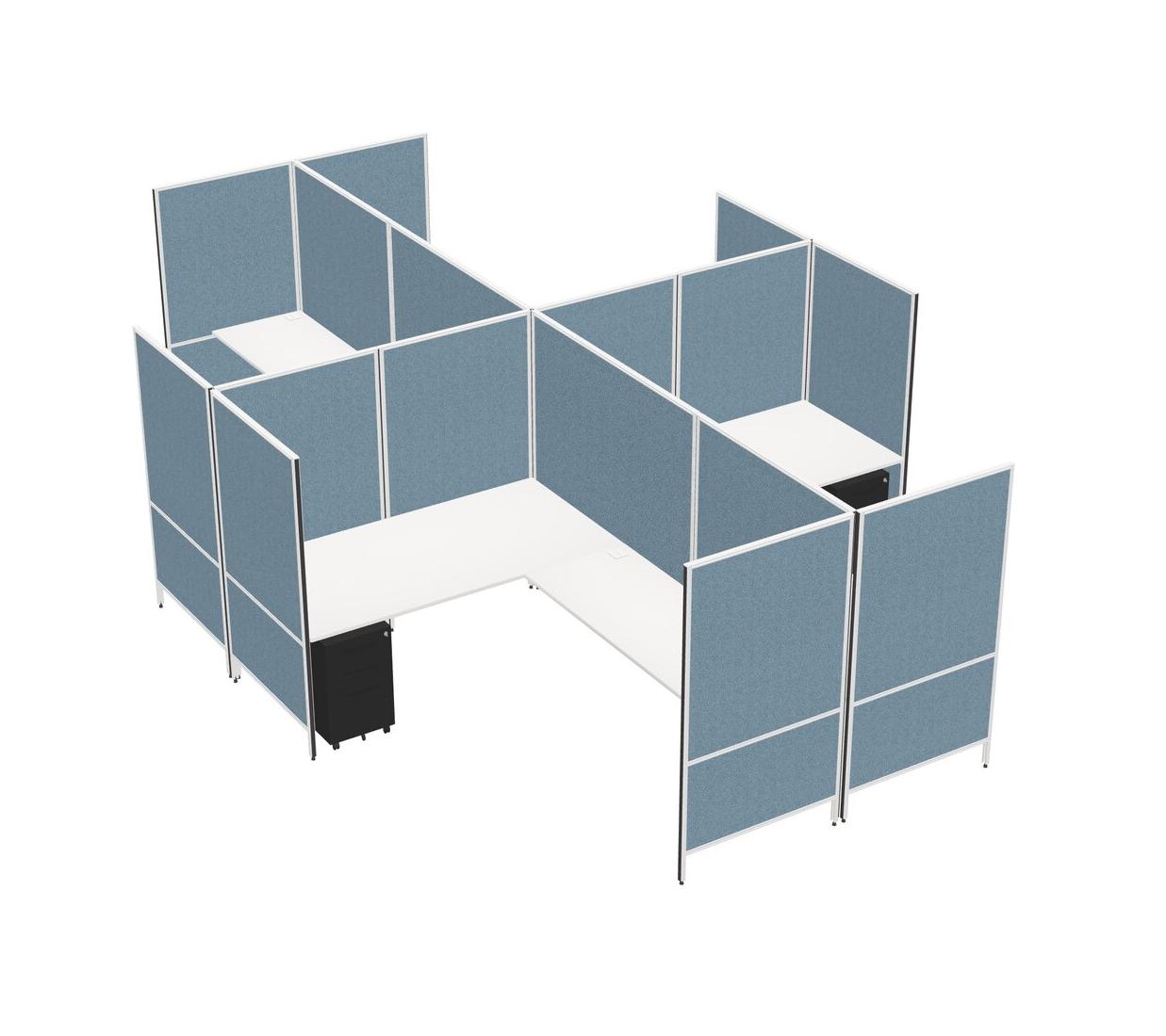White Modern Modular Quad L-Shaped Panel System + Metal Mobile Drawers