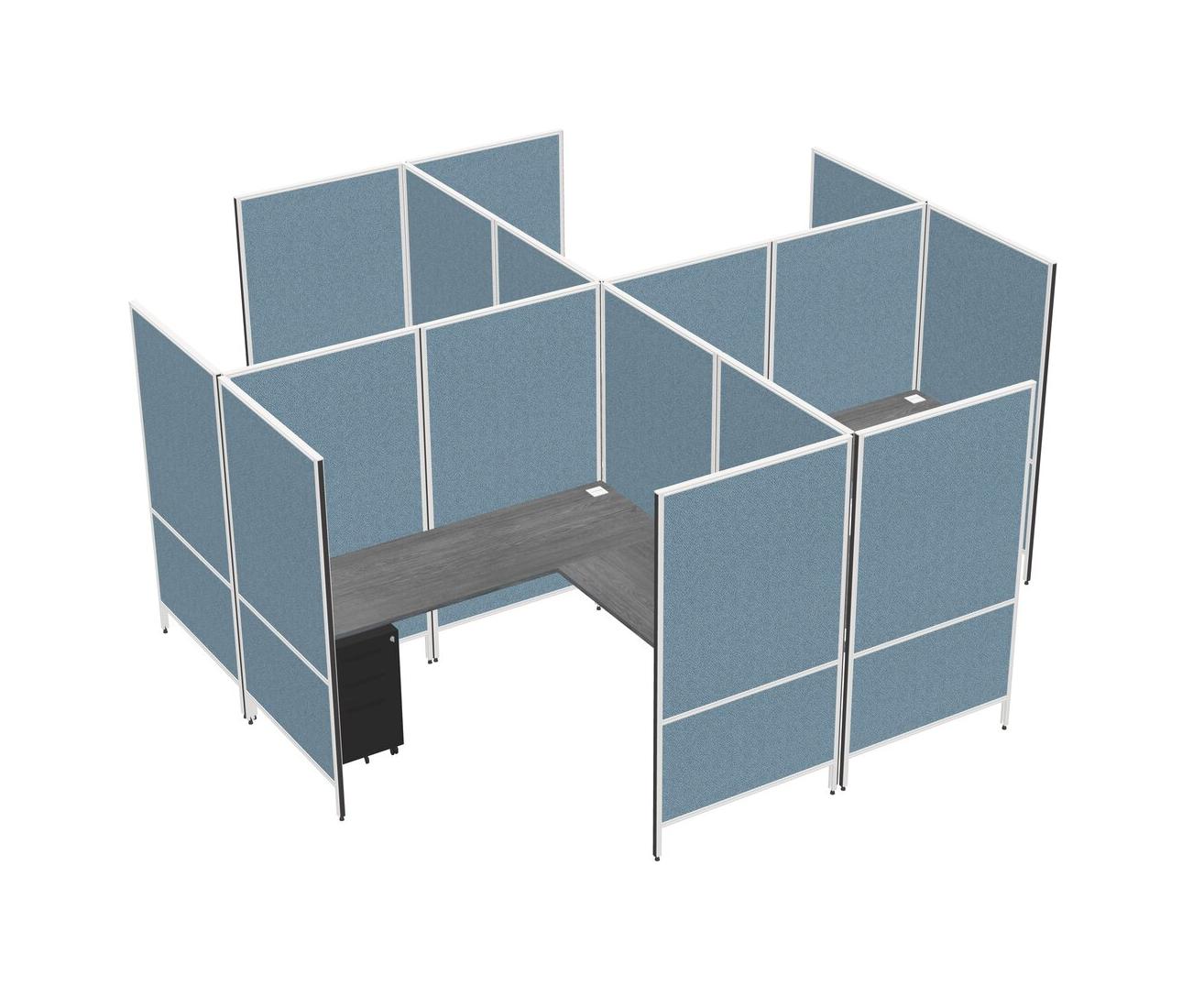 Grey Modern Modular Quad L-Shaped Panel System + Metal Mobile Drawers