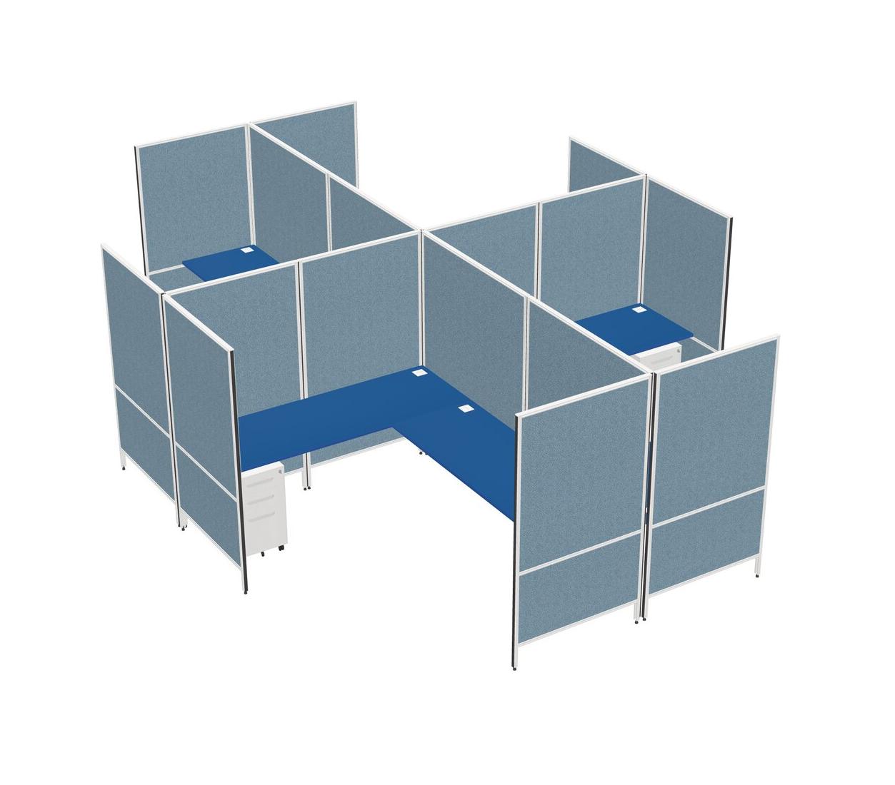 Prism Blue Modern Modular Quad L-Shaped Panel System + Metal Mobile Drawers