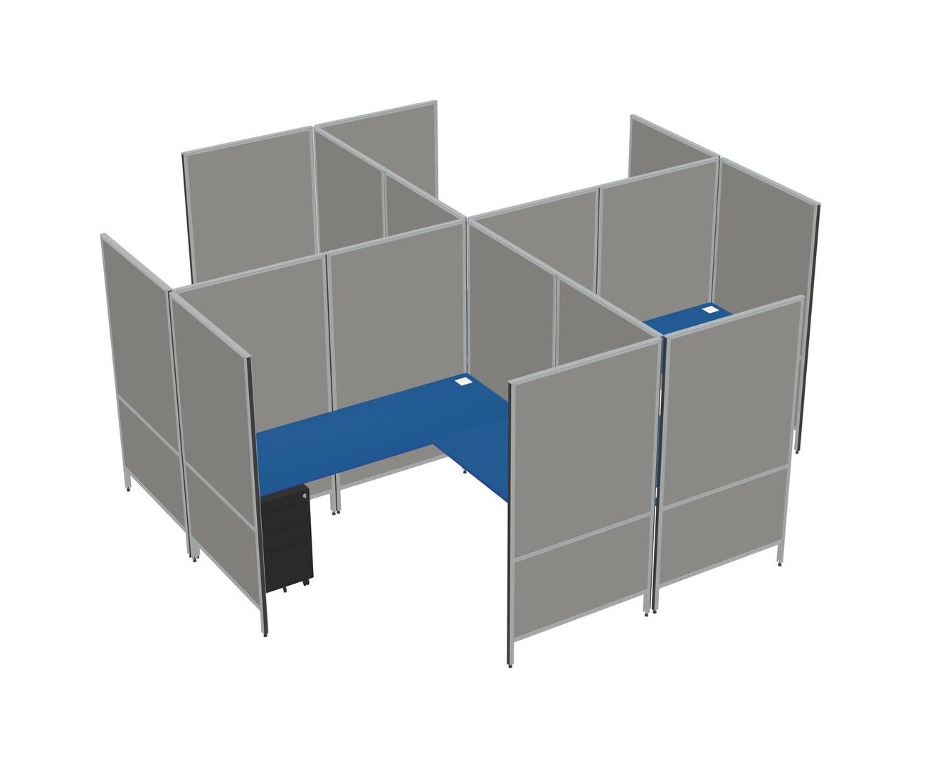 Prism Blue Modern Modular Quad L-Shaped Panel System + Metal Mobile Drawers