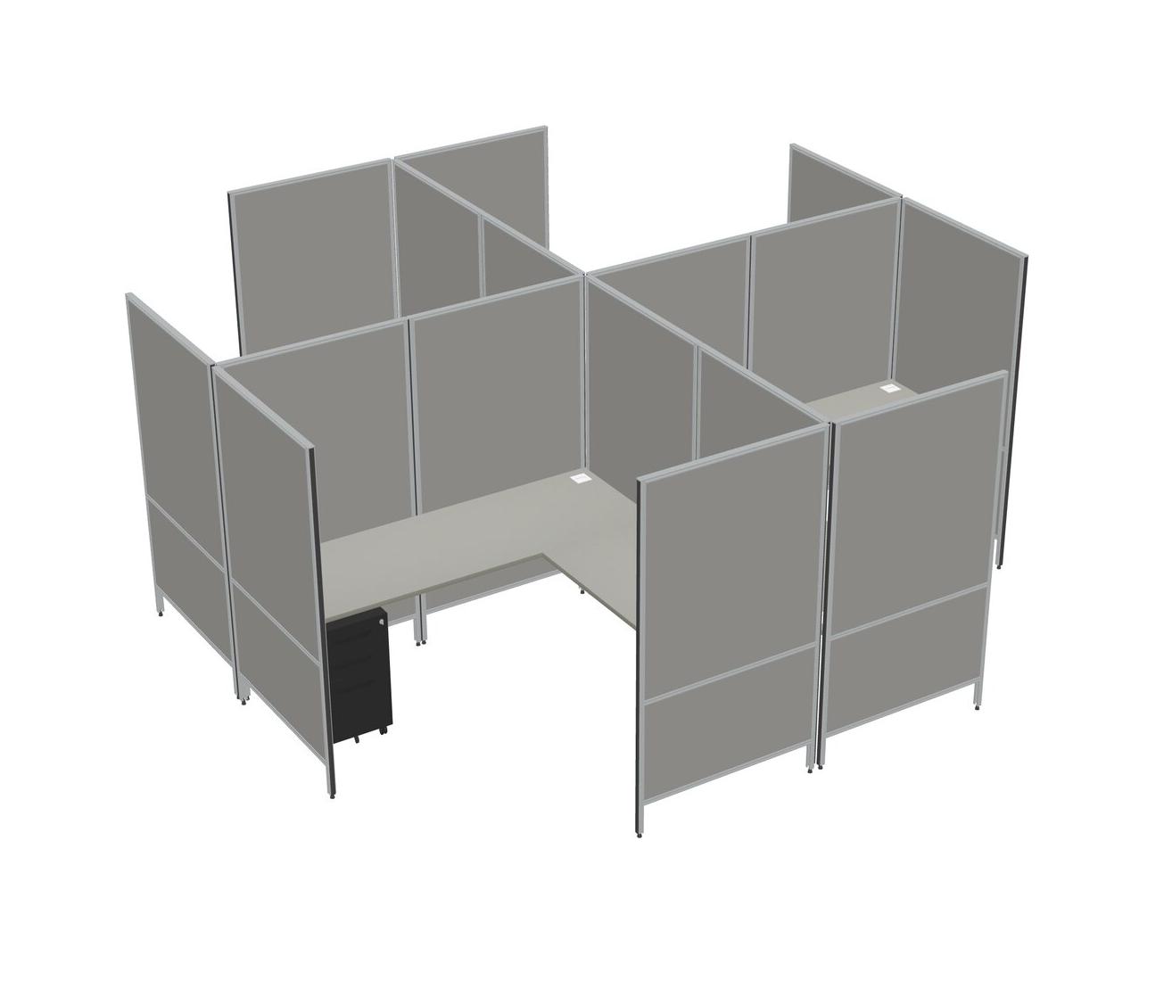 Grey Shadows Modern Modular Quad L-Shaped Panel System + Metal Mobile Drawers