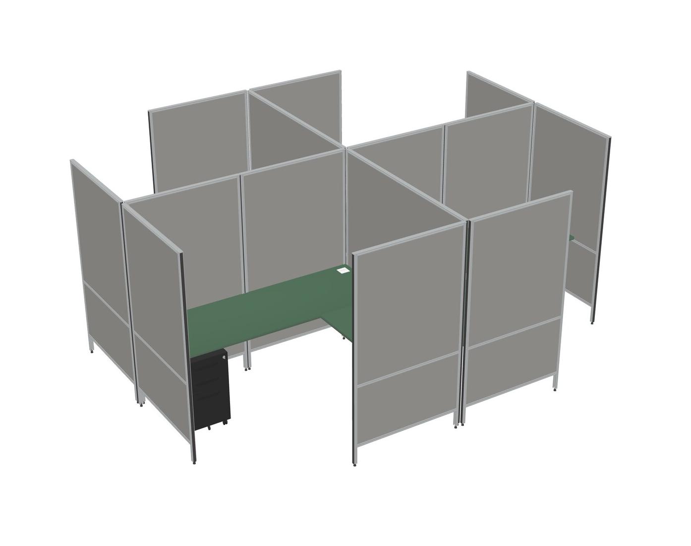 Green Modern Modular Quad L-Shaped Panel System + Metal Mobile Drawers