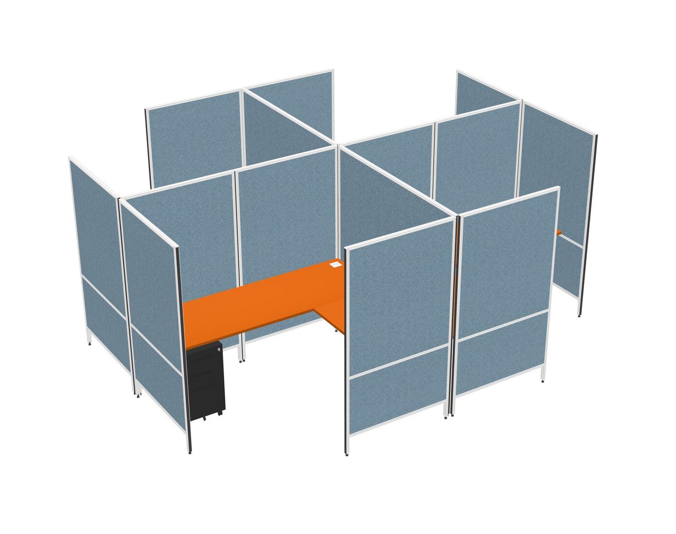 Orange Modern Modular Quad L-Shaped Panel System + Metal Mobile Drawers