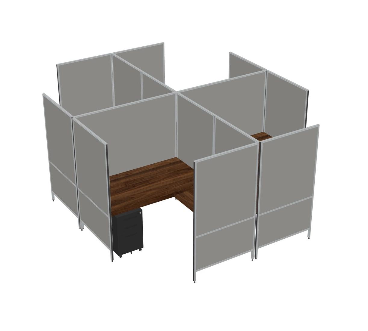 Columbia Walnut Modern Modular Quad L-Shaped Panel System + Metal Mobile Drawers