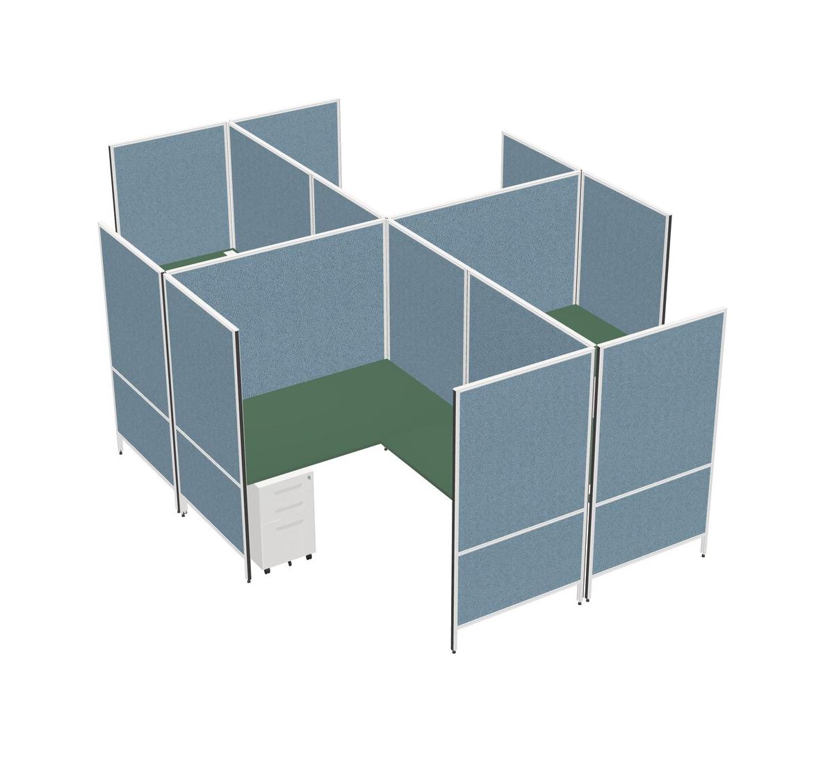 Green Modern Modular Quad L-Shaped Panel System + Metal Mobile Drawers