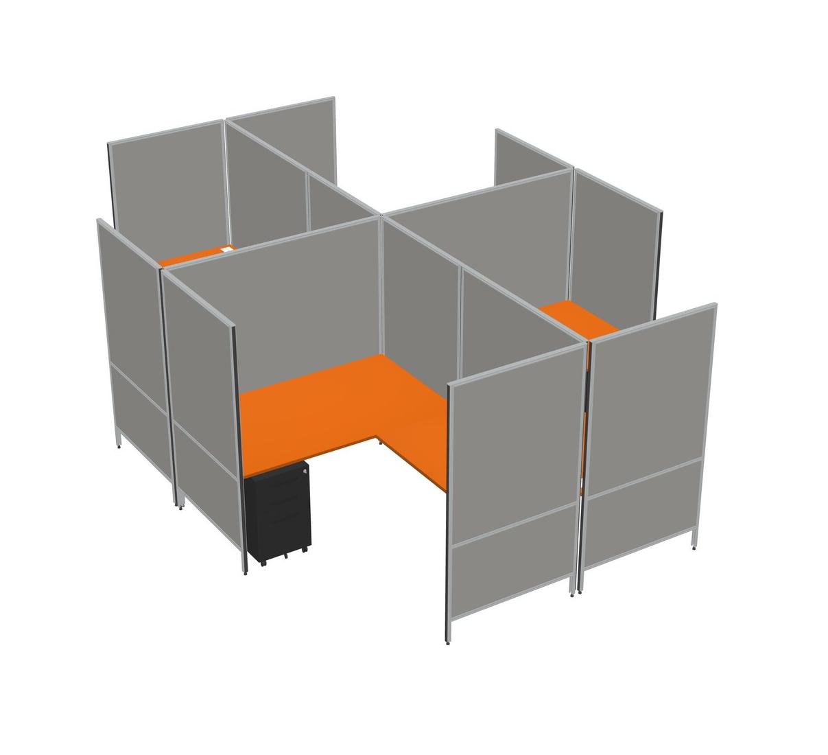 Orange Modern Modular Quad L-Shaped Panel System + Metal Mobile Drawers