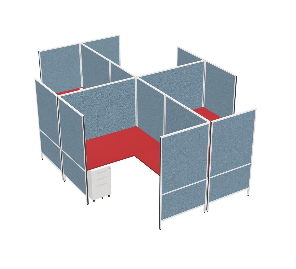 Prism Red Modern Modular Quad L-Shaped Panel System + Metal Mobile Drawers