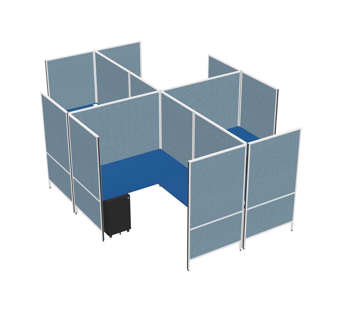 Prism Blue Modern Modular Quad L-Shaped Panel System + Metal Mobile Drawers