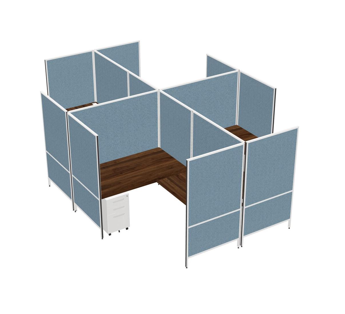 Columbia Walnut Modern Modular Quad L-Shaped Panel System + Metal Mobile Drawers