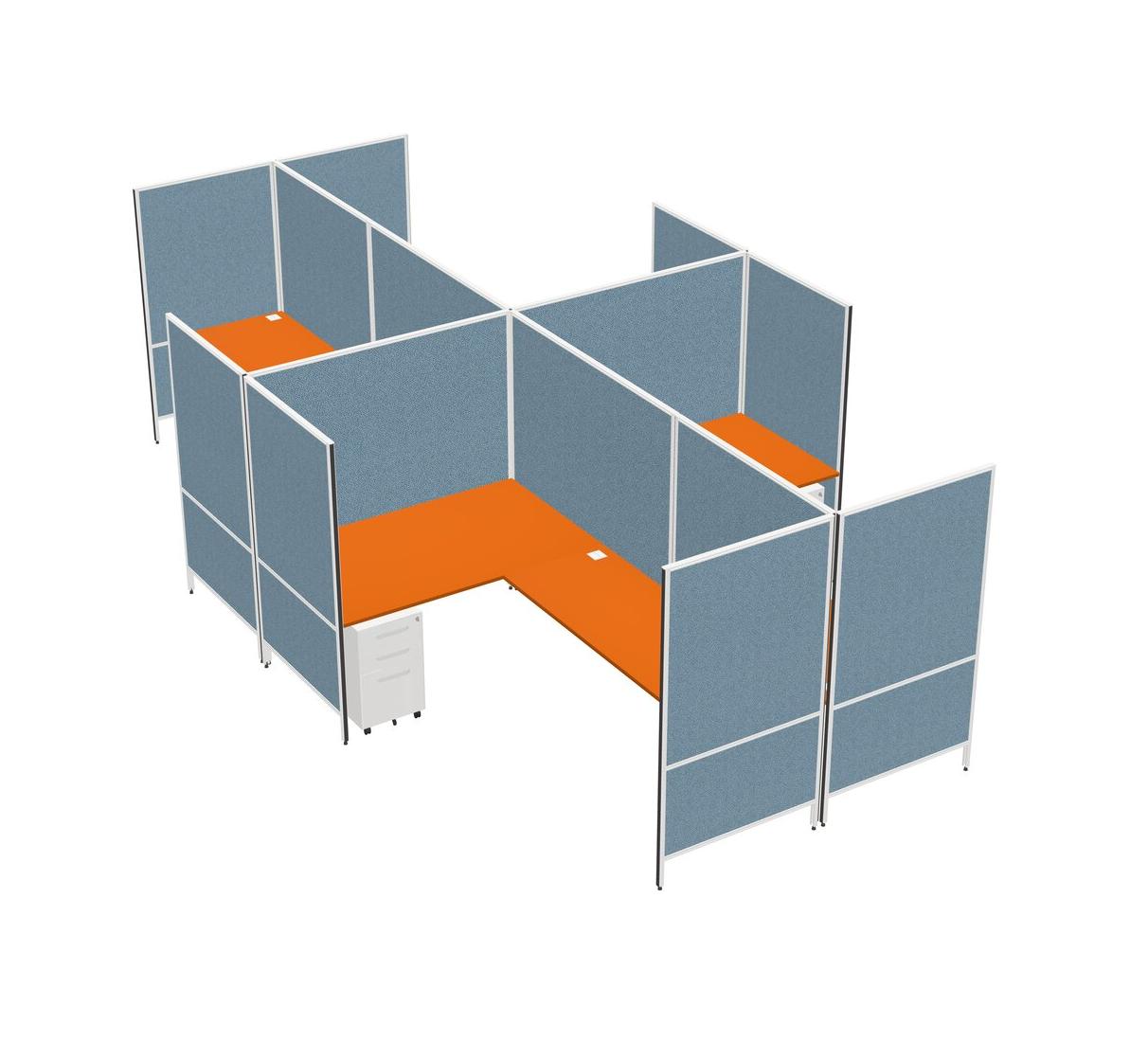 Orange Modern Modular Quad L-Shaped Panel System + Metal Mobile Drawers