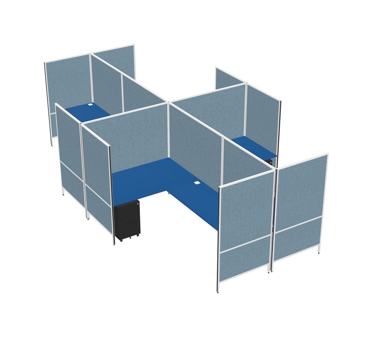 Prism Blue Modern Modular Quad L-Shaped Panel System + Metal Mobile Drawers