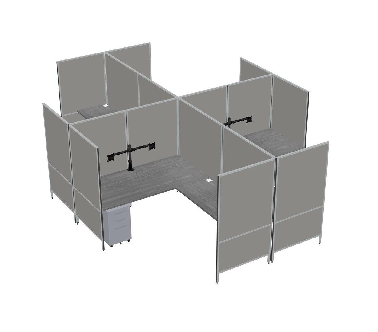 Grey Modern Modular Quad L-Shaped Panel System + Metal Mobile Drawers + Monitor Arm (double Arms)