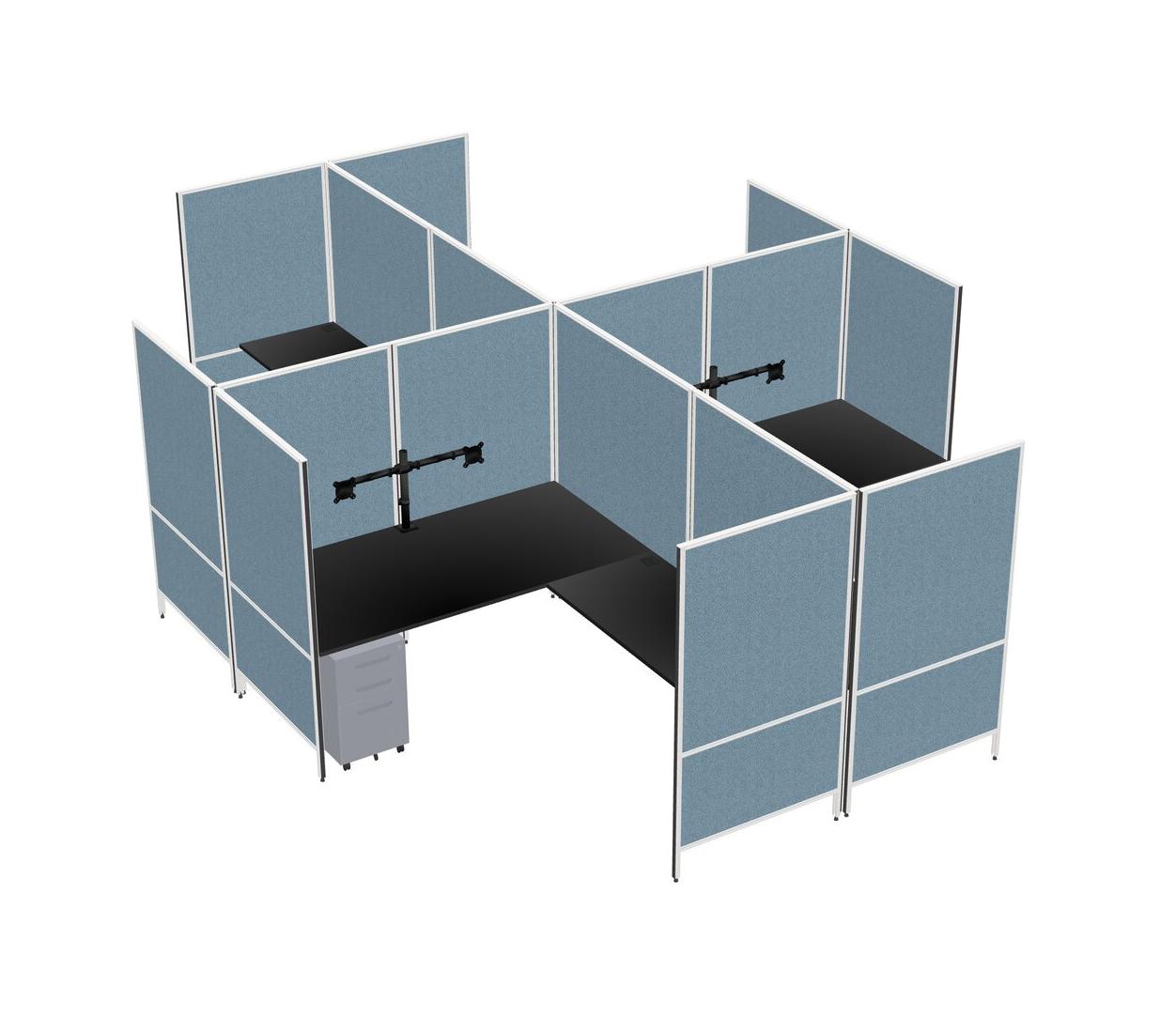 Black Modern Modular Quad L-Shaped Panel System + Metal Mobile Drawers + Monitor Arm (double Arms)
