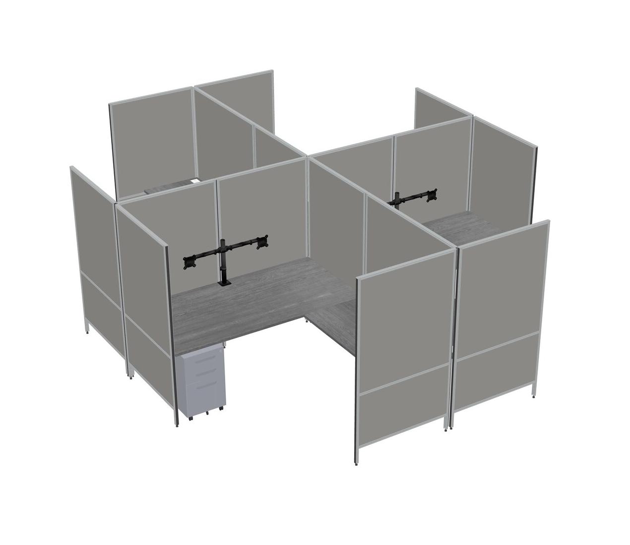 Grey Modern Modular Quad L-Shaped Panel System + Metal Mobile Drawers + Monitor Arm (double Arms)