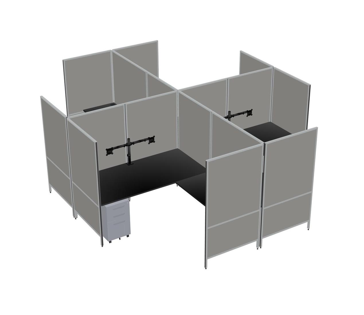Black Modern Modular Quad L-Shaped Panel System + Metal Mobile Drawers + Monitor Arm (double Arms)