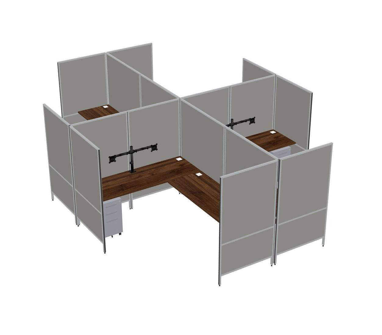 Columbia Walnut Modern Modular Quad L-Shaped Panel System + Metal Mobile Drawers + Monitor Arm (double Arms)