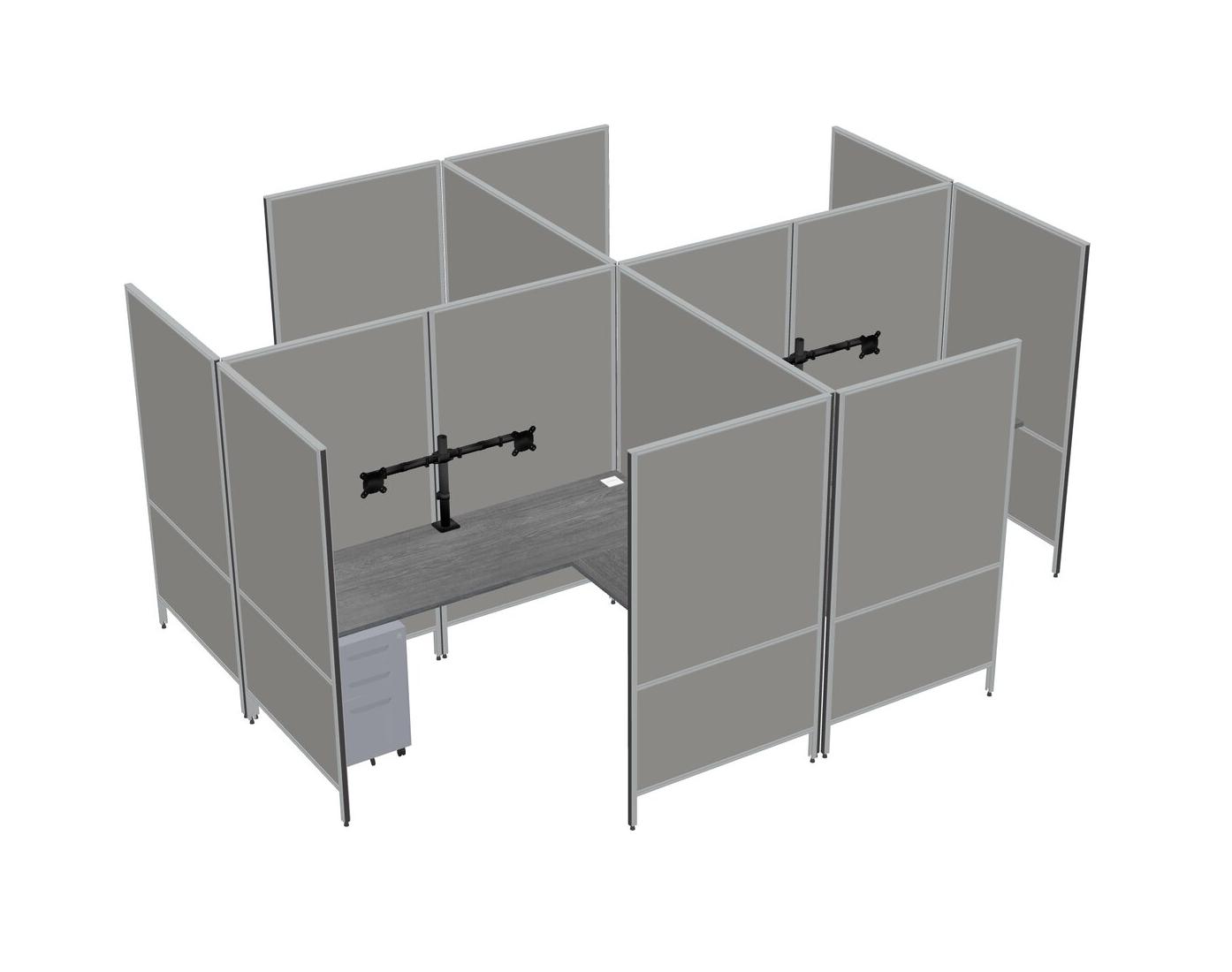 Grey Modern Modular Quad L-Shaped Panel System + Metal Mobile Drawers + Monitor Arm (double Arms)