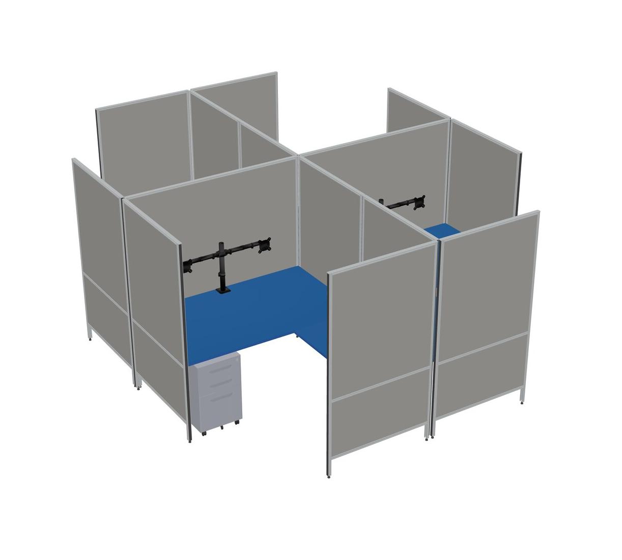 Prism Blue Modern Modular Quad L-Shaped Panel System + Metal Mobile Drawers + Monitor Arm (double Arms)