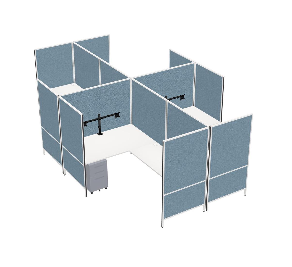 White Modern Modular Quad L-Shaped Panel System + Metal Mobile Drawers + Monitor Arm (double Arms)