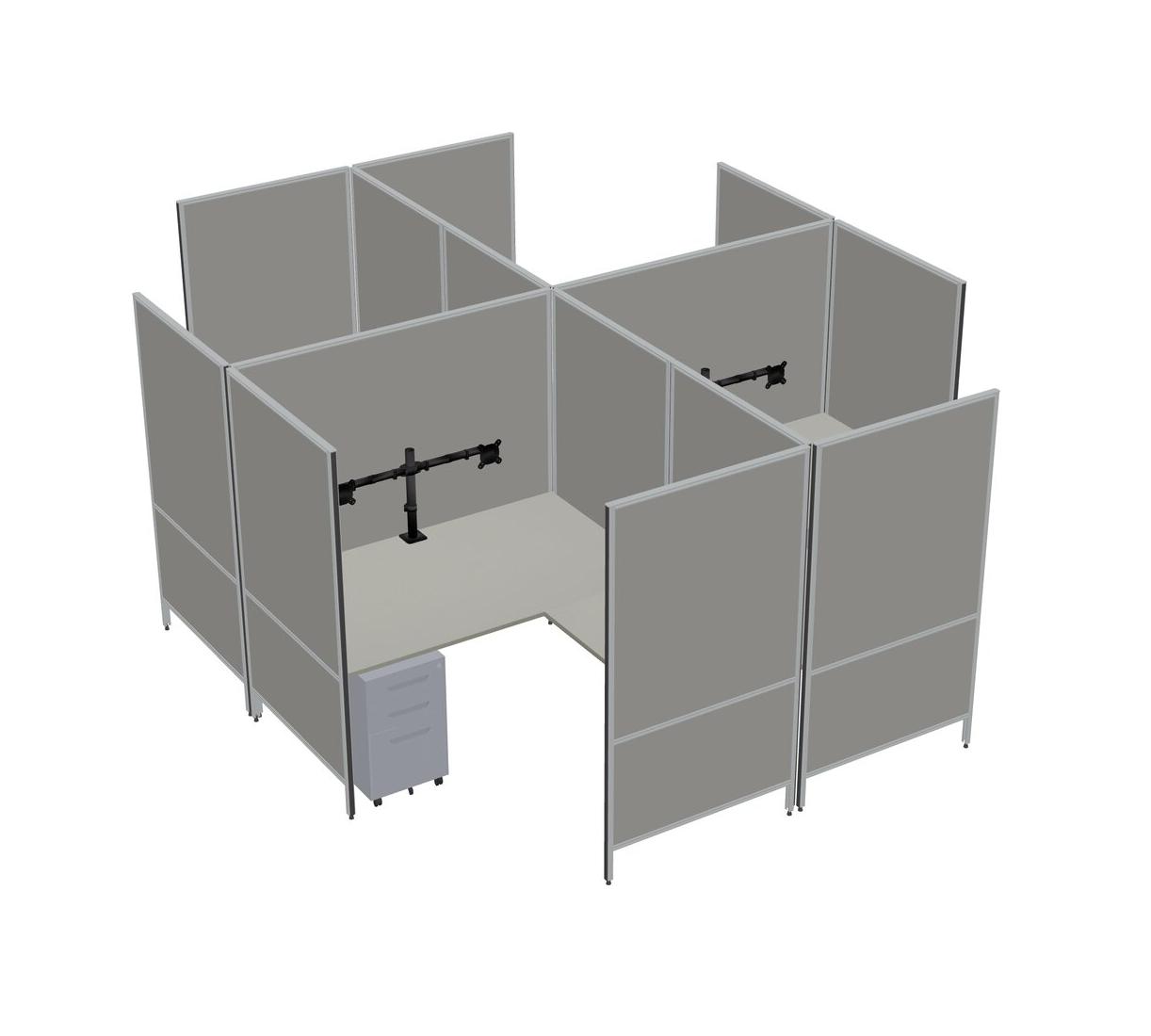Grey Shadows Modern Modular Quad L-Shaped Panel System + Metal Mobile Drawers + Monitor Arm (double Arms)