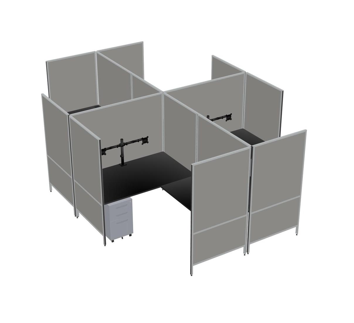 Black Modern Modular Quad L-Shaped Panel System + Metal Mobile Drawers + Monitor Arm (double Arms)