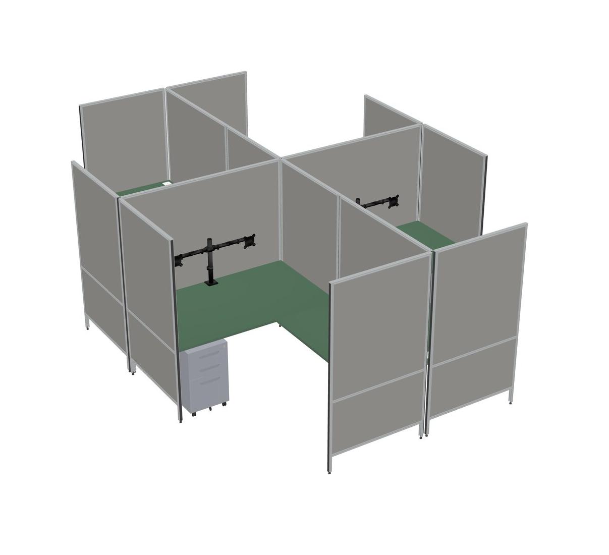 Green Modern Modular Quad L-Shaped Panel System + Metal Mobile Drawers + Monitor Arm (double Arms)