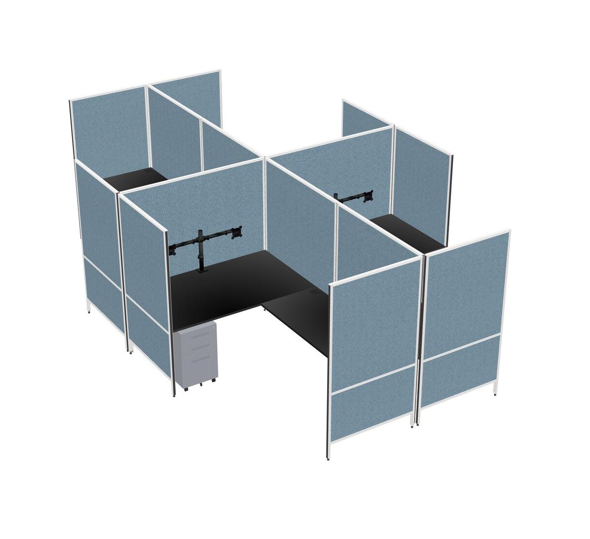 Black Modern Modular Quad L-Shaped Panel System + Metal Mobile Drawers + Monitor Arm (double Arms)
