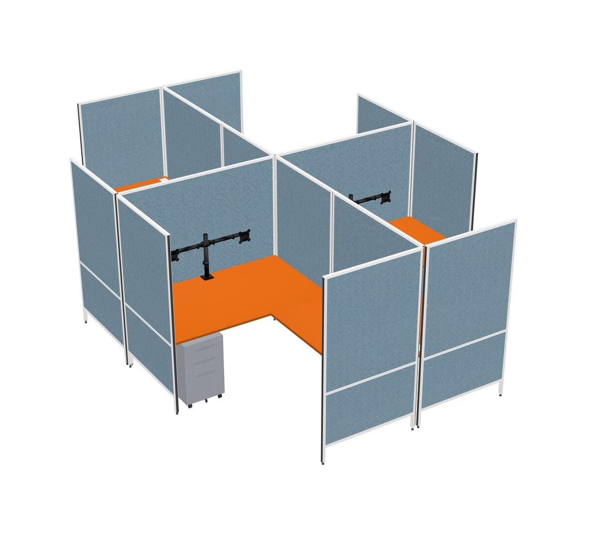 Orange Modern Modular Quad L-Shaped Panel System + Metal Mobile Drawers + Monitor Arm (double Arms)