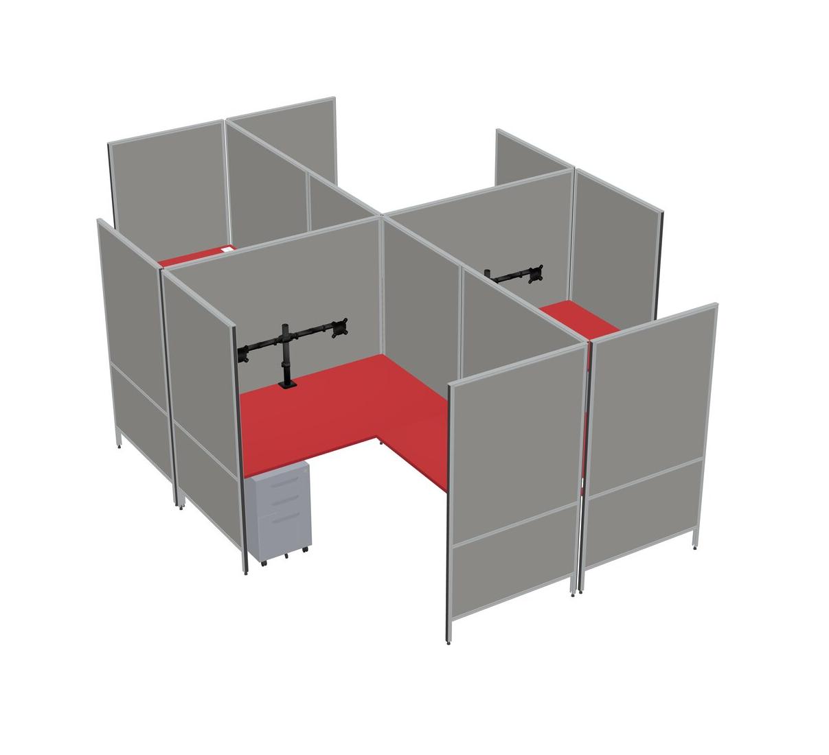Prism Red Modern Modular Quad L-Shaped Panel System + Metal Mobile Drawers + Monitor Arm (double Arms)