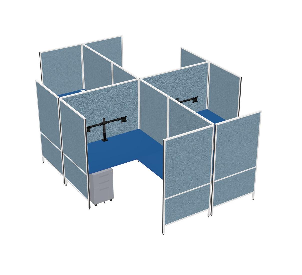 Prism Blue Modern Modular Quad L-Shaped Panel System + Metal Mobile Drawers + Monitor Arm (double Arms)