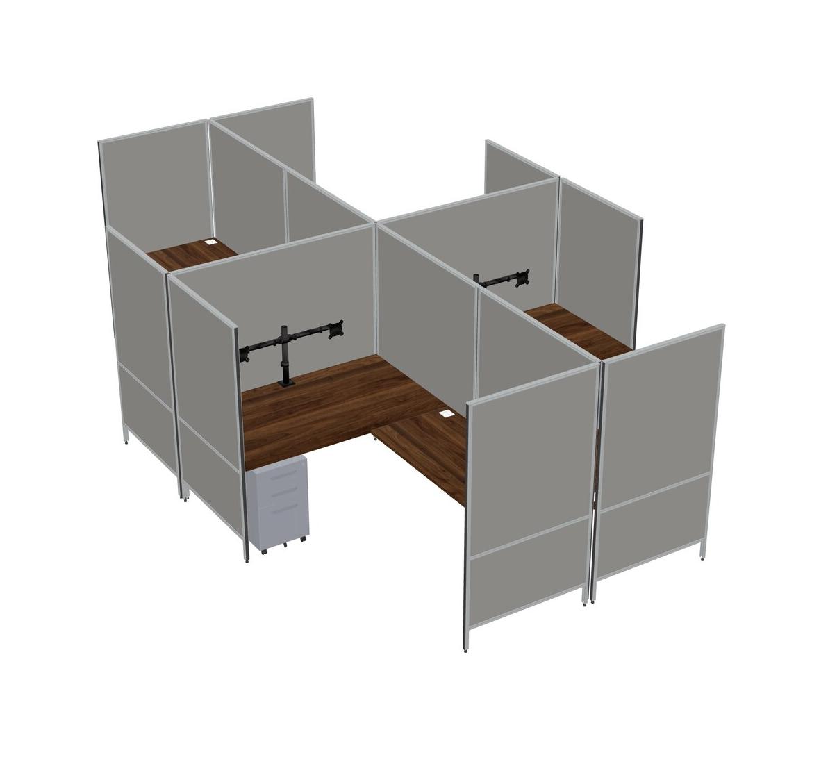 Columbia Walnut Modern Modular Quad L-Shaped Panel System + Metal Mobile Drawers + Monitor Arm (double Arms)