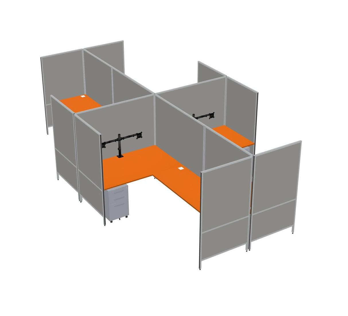 Orange Modern Modular Quad L-Shaped Panel System + Metal Mobile Drawers + Monitor Arm (double Arms)