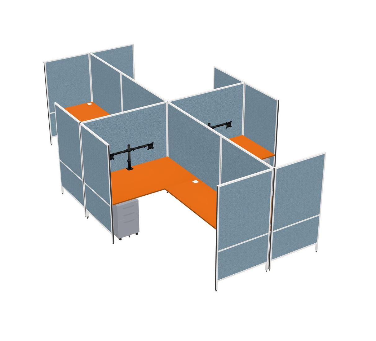 Orange Modern Modular Quad L-Shaped Panel System + Metal Mobile Drawers + Monitor Arm (double Arms)