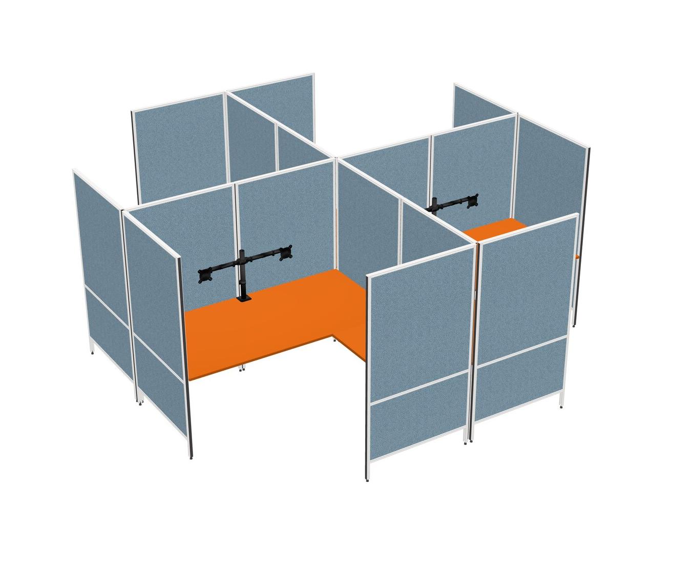 Orange Modern Modular Quad L-Shaped Panel System + Monitor Arm (double Arms)