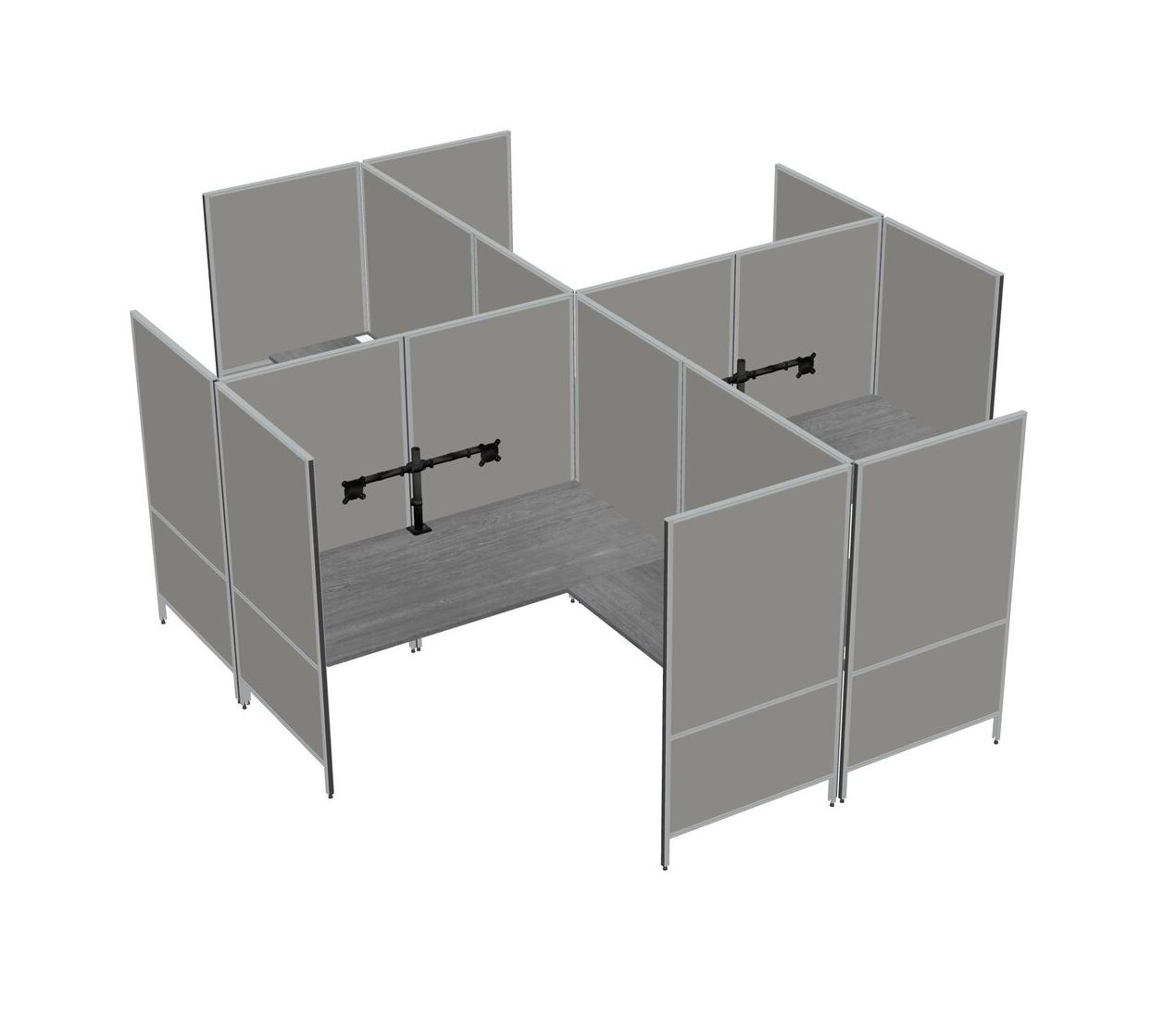 Grey Modern Modular Quad L-Shaped Panel System + Monitor Arm (double Arms)