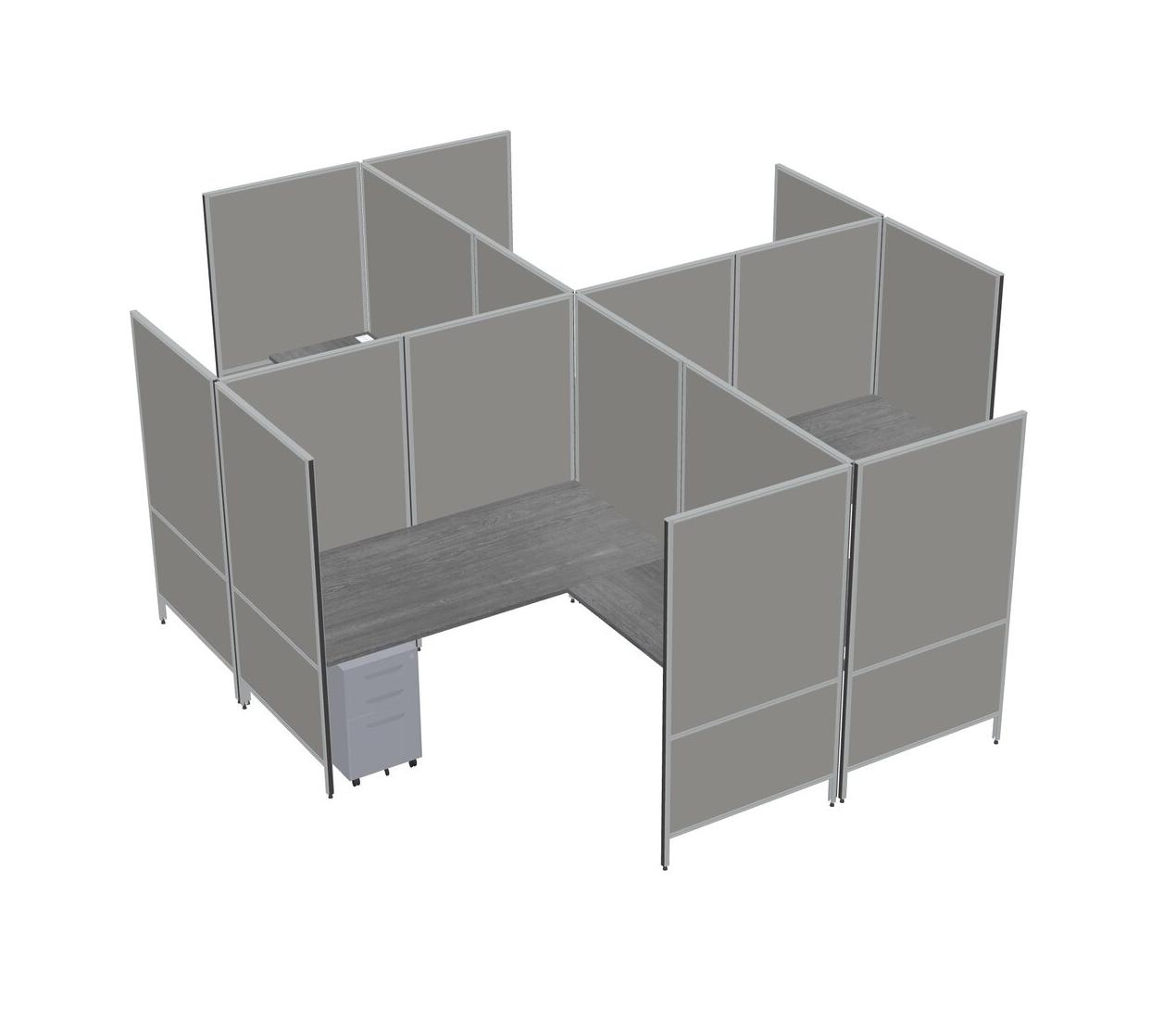 Grey Modern Modular Quad L-Shaped Panel System + Metal Mobile Drawers
