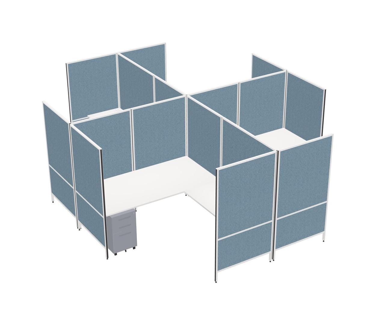 White Modern Modular Quad L-Shaped Panel System + Metal Mobile Drawers