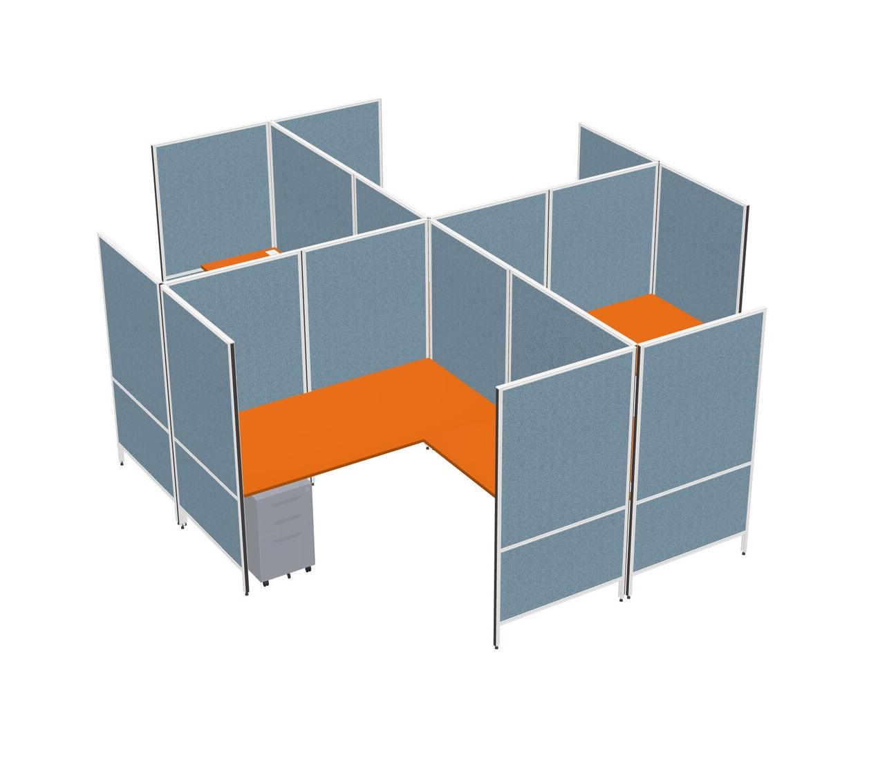 Orange Modern Modular Quad L-Shaped Panel System + Metal Mobile Drawers